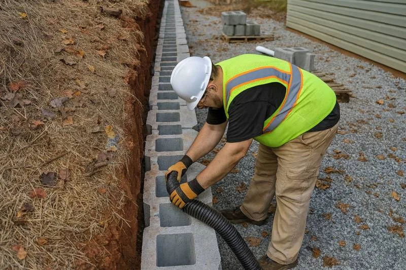 We add drainage gravel, perforated pipes, and weep holes — essential for preventing wall failure.